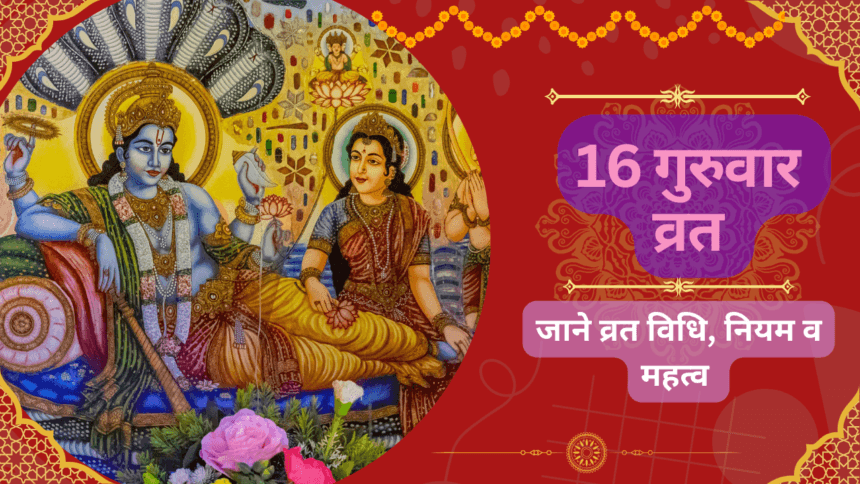 हिंदू धर्म में, सोलह गुरुवार व्रत एक खास प्रकार का व्रत है जिसे महिलाएं विशेष रूप से भगवान विष्णु और मां लक्ष्मी से कृपा प्राप्त करने के लिए करती हैं।